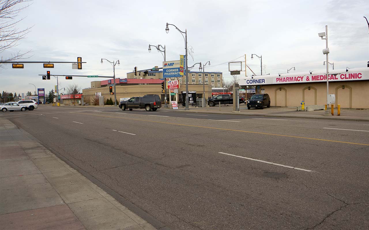 Don Bouzek of the Jasper Place Community History Project took the following photos on this date to document the buildings at the corner of 156 Street and Stony Plain Road that would be soon removed due to the construction of the Valley Line West LRT.