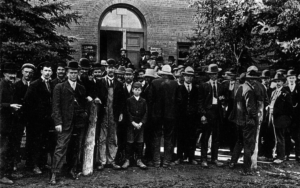● In 1876 entry could be made by any person who was a sole head of a family, or any male over the age of 18. Single women were no longer permitted to homestead. A woman could homestead only if she was a sole head of household with a minor child or children. This was interpreted to mean a widow.