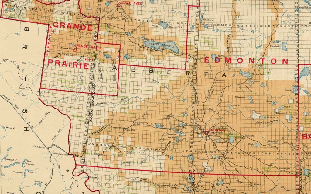 Special Sections: The odd-numbered sections in each township were railway land grants. The Canadian Pacific Railway was granted 25,000,000 acres. The Hudson’s Bay Company was awarded 1 and 3/4 sections in each township. Two sections in each township were set aside to support educational facilities and were called school sections. Railway, Hudson’s Bay Company and school lands were available for purchase, and the idea was that as the homesteaders improved their quarter-sections they would seek to expand through purchase. The value of the land would increase as the homesteaders improved the land, and other buyers would also be enticed. These sections could also be available for leasing.